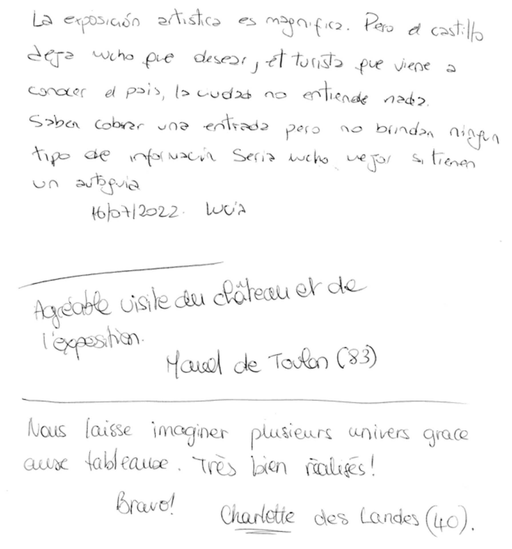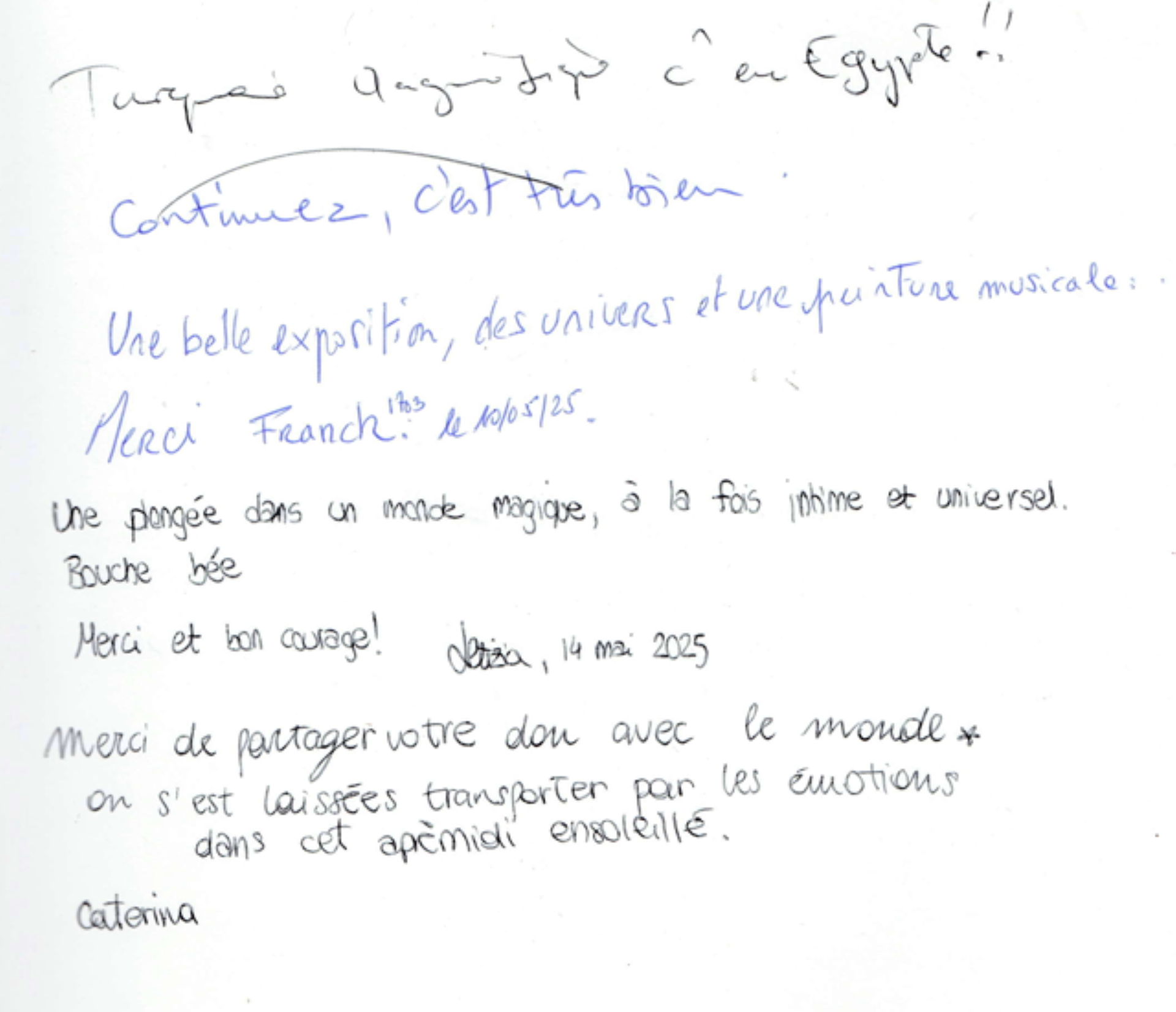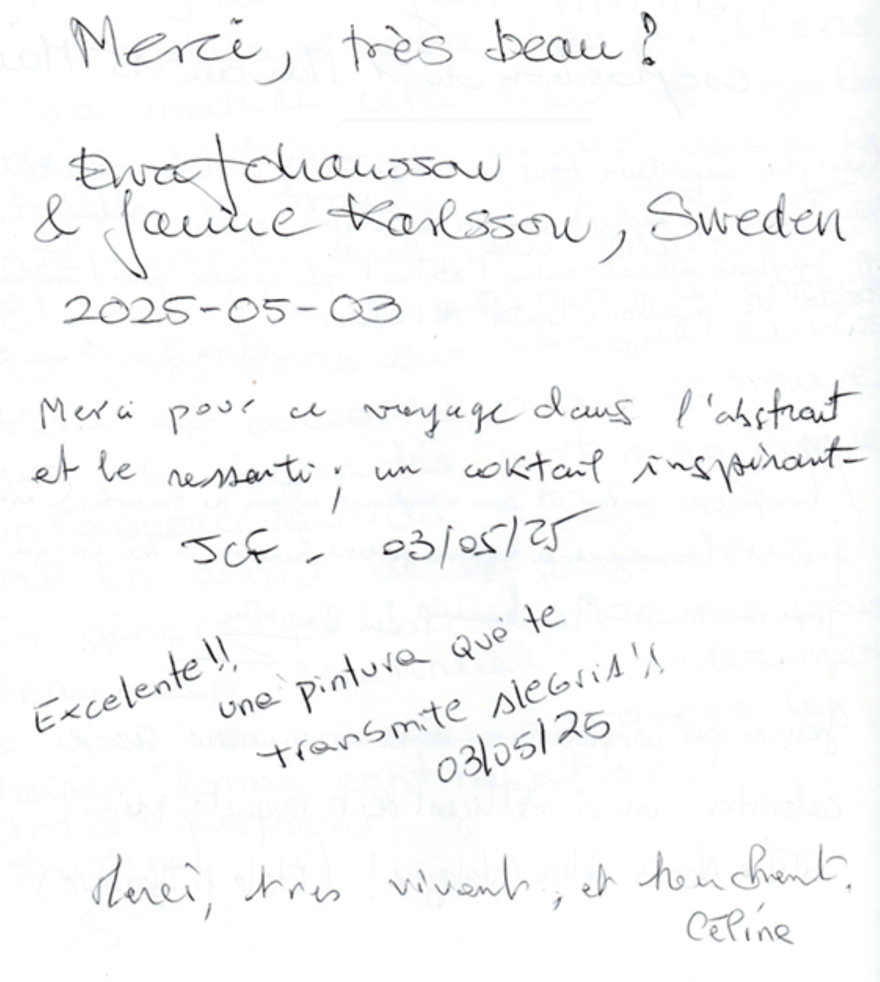 Ici je partage avec vous quelques extraits du livre d'or, qui permet à chacun d'exprimer son ressenti lors de mes expositions. Et je remercie toutes celles et ceux qui ont eu la gentillesse de laisser un message.